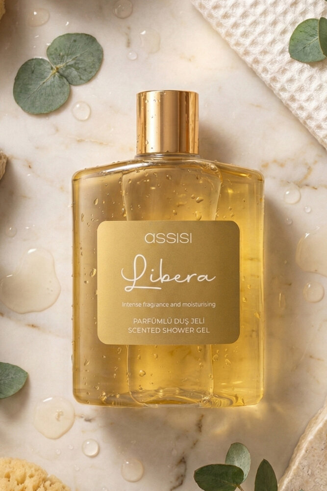 "Assisi" markasının "Libera" parfümlü duş jeli, sofistike bir banyo deneyimi sunuyor. Sade ama şık dikdörtgen cam şişesi ve altın rengi etiketi, ürünün lüks yapısını vurguluyor. Bu şeffaf, sarımsı jel, banyolarınıza zarif bir dokunuş katarken benzersiz bir arındırma sunuyor.