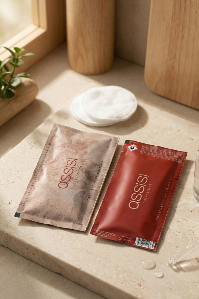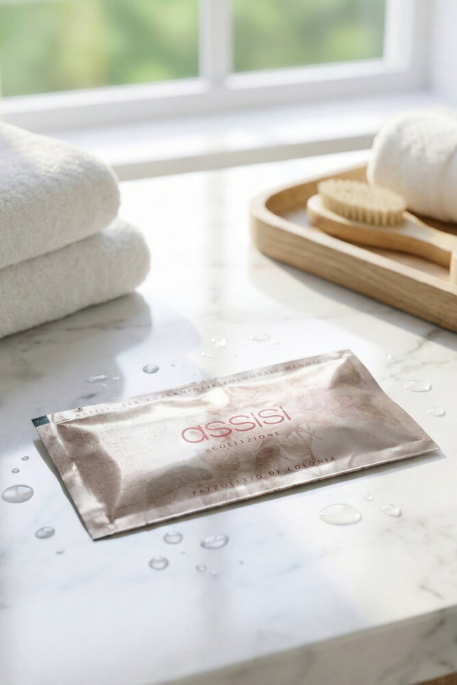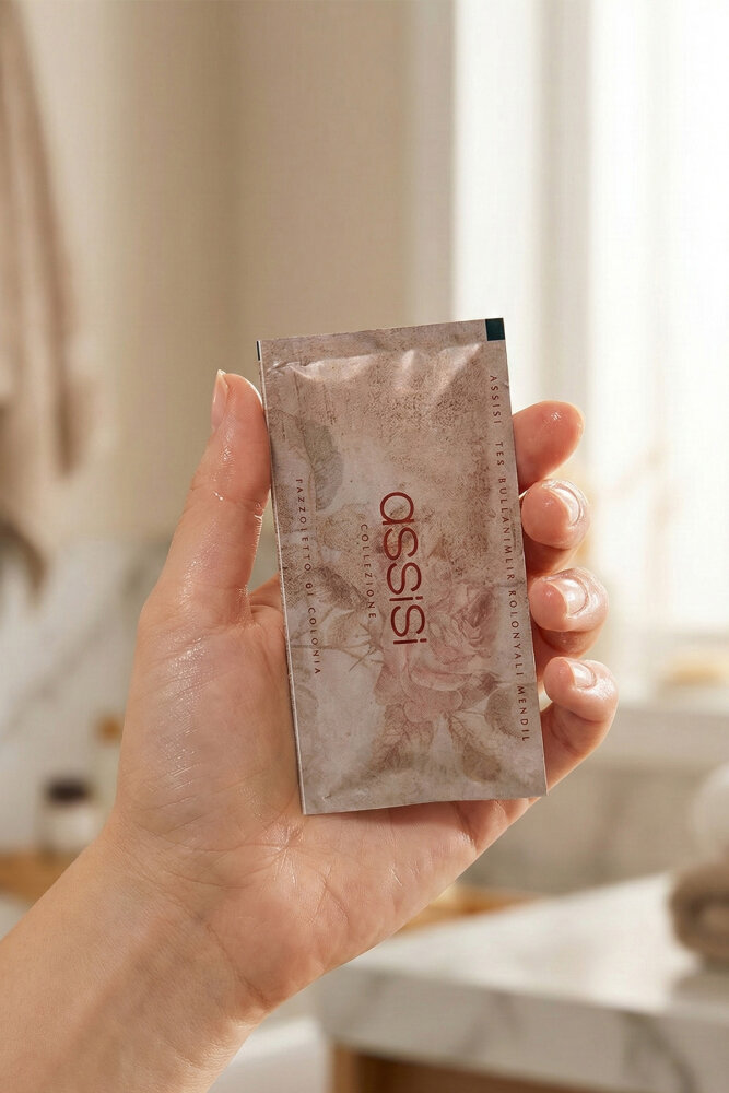 Assisi kolonyalı mendillerle kendinizi ferah ve temiz hissedin. Hem estetik hem de fonksiyonel bu ürün, günlük ihtiyacınız olan hijyeni karşılar.